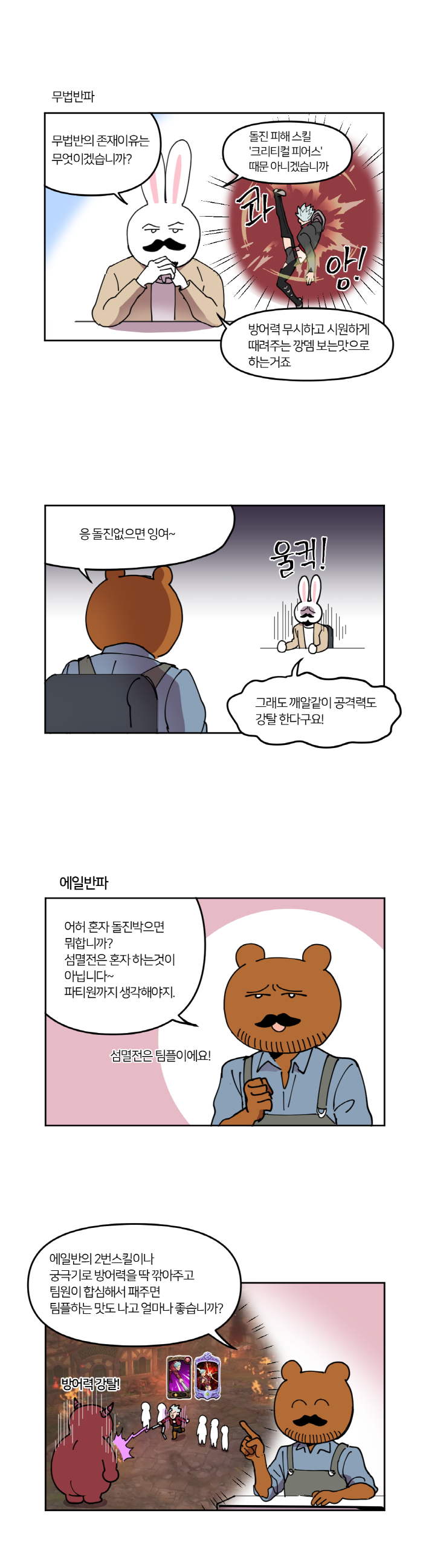 국도 작가는 두 영웅의 특징을 짚어준 것은 물론, 두 영웅이 없는 게이머들을 위해 '[오버파워] 헌터 슬레이더'라는 대체 영웅을 사용해도 된다는 것을 코믹하게 풀어냈다.
