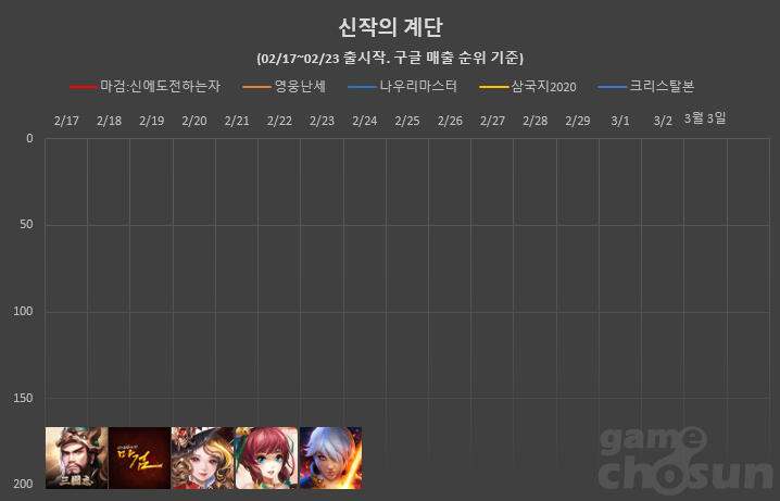 ※ 신작의계단 코너는 [게임조선 편집국]과 게임쿠폰 앱 [게임쿠폰 일일퀘스트] 쪽을 통해 출시 정보가 파악된 타이틀 중 구글플레이스토어 차트에 진입한 타이틀만을 소개합니다. 출시되었으나 언급되지 않은 타이틀이 있다면 제보바랍니다.