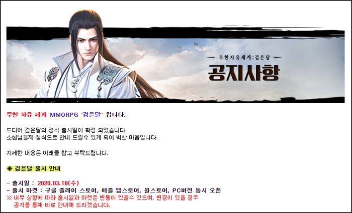라인콩코리아가 준비하고 있는 모바일 무협 MMORPG '검은달'이 정식 출시를 2주 앞두고 있다.