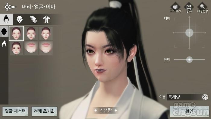 이용자는 자신이 선택한 문파에 따라 다양한 캐릭터를 만들 수 있는데 단순히 미형 캐릭터뿐만 아니라 독특한 생김새를 가진 캐릭터부터 초등학생 수준의 어린아이까지 다채로운 커스터마이징이 가능하다. 또한 이목구비 조절은 좌우 각각 설정 가능하기 때문에 원한다면 비대칭 얼굴을 가진 캐릭터도 만들 수 있다.