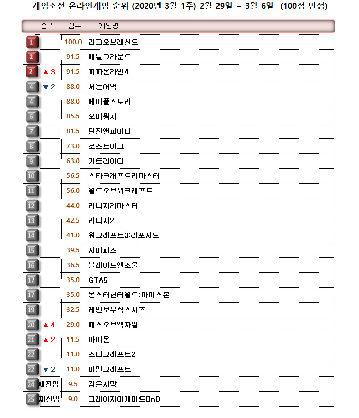 삼일절 버닝패스 이벤트의 무시무시한 보상과 더불어 실축 K리그와 연계되는 랜선 리그 발족으로 화제몰이를 한 피파온라인4가 공동 2위를 기록했다.