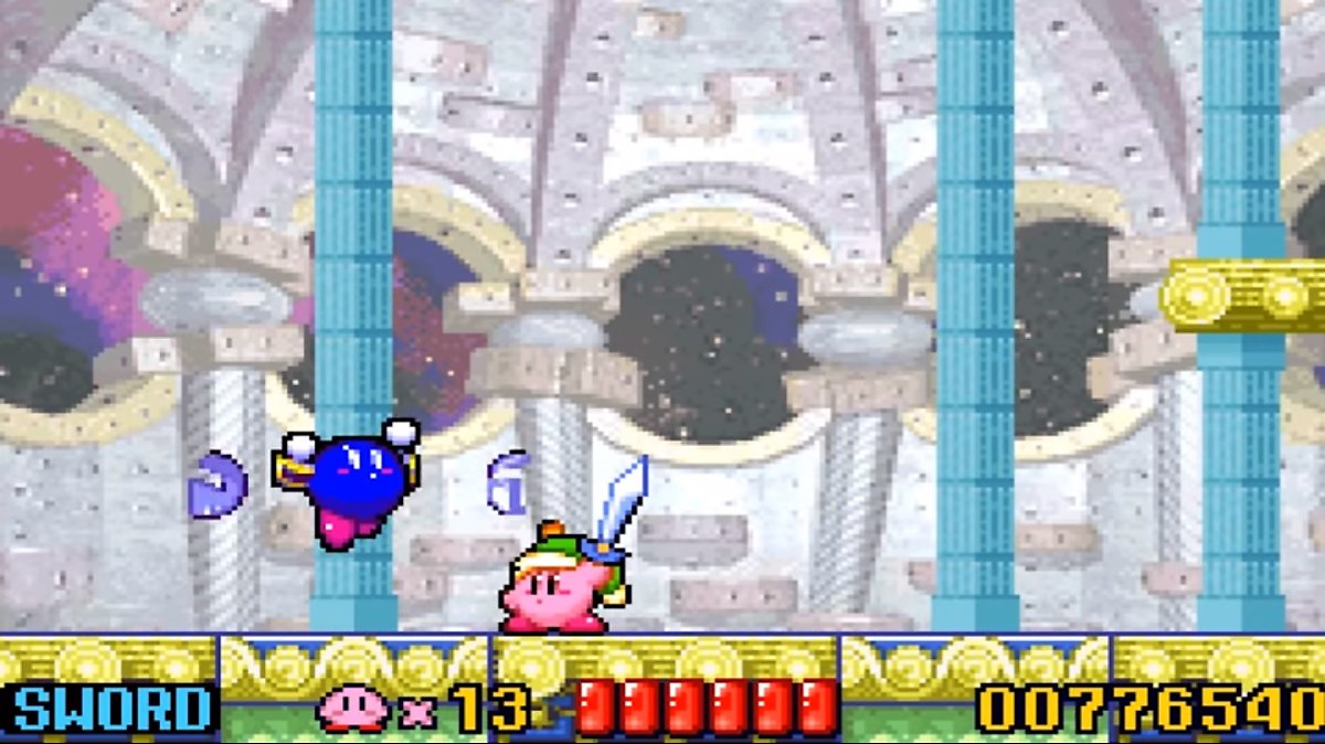 라이벌 캐릭터인 메타 나이트의 패배 장면, 갑올읏 벗은 모습은 그냥 파란 커비다