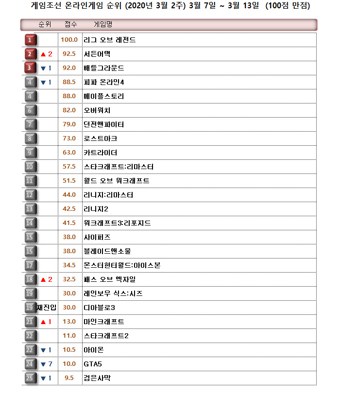 코로나-19 이슈로 인해 주요 리그가 잠정 중단되고 리프트 라이벌즈 폐지, MSI 개최 연기 등의 문제로 어려움을 겪었지만 리그 오브 레전드의 순위는 흔들리지 않았다.