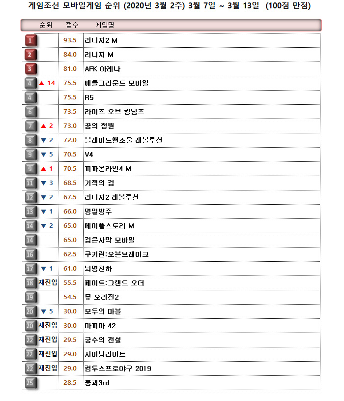 신규 사냥터 2종 추가와 유저 편의성 개선을 우선시한 아덴리턴즈 업데이트로 금주도 리니지2 M이 1위를 수성하고 있다.