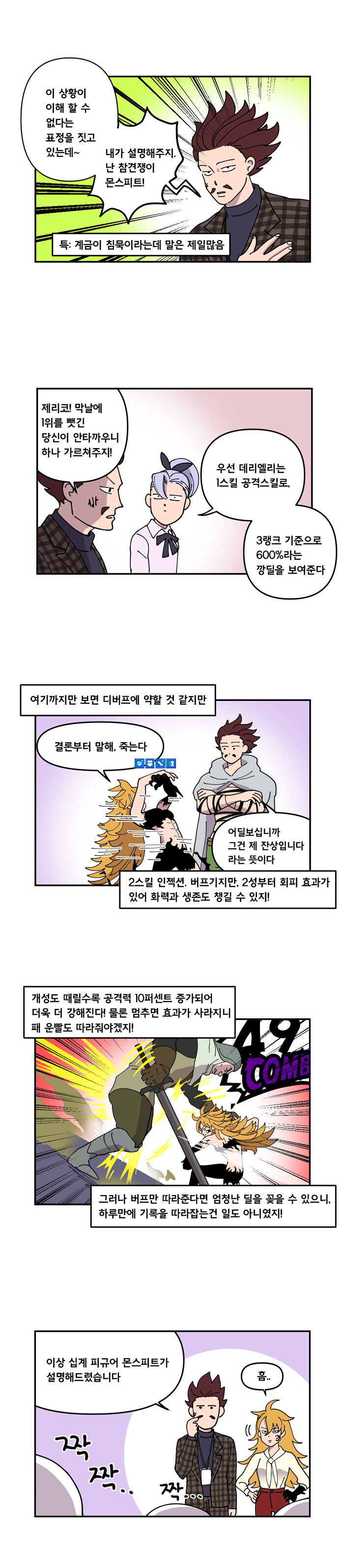 10화를 맞이한 '일곱 개의 대죄 영웅 소개'에서는 '<십계> 「순결」의 데리엘리'를 소개한다. 일명 적데리엘리라 불리우는데, PvE에서 가장 강력한 딜러 중 하나라고 평가받는다. 공격력은 물론이거니와 각종 디버프에 면역이라 생존력도 뛰어나다. 적데리엘리의 등장은 딜러 생태계에 큰 영향을 미쳤는데, 이번 10화에서는 해당 현상에 대해 재미있게 웹툰으로 풀어냈다.