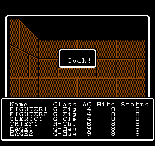 재수가 없으면 한발짝 디뎠는데 'OUCH!'라는 시스템 메시지와 함께 공격을 받고 길을 잘못 들었음을 깨닫고 뒤로 도는 순간 'OUCH!'와 함께 새로운 몬스터를 만나며 잃은 체력을 복구하기 위해 여관을 가는 도중에 연속 전투가 벌어져 파티가 전멸하는 상황이 빈번하게 발생하기도 한다. 심지어 부활마저 랜덤이라서 여차하면 골로 가는 게 아니라 골(骨) 상태로 아예 완전히 가버리기도 하니 문제가 이만저만이 아니었을 것이다.