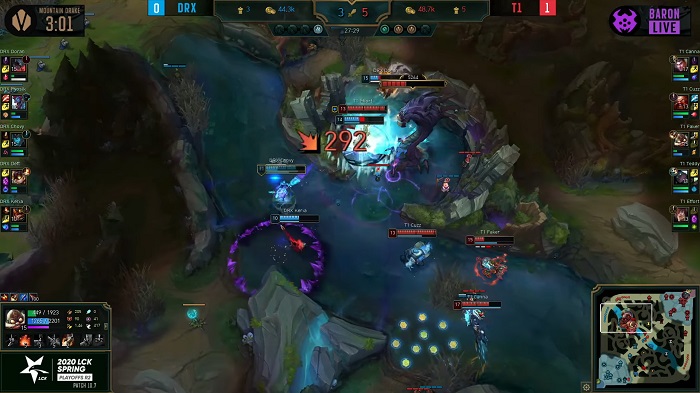 세트가 바론 둥지 내에 있던 디알엑스의 주요 챔피언을 꽁꽁 묶어놓았다 = LCK 공식 영상