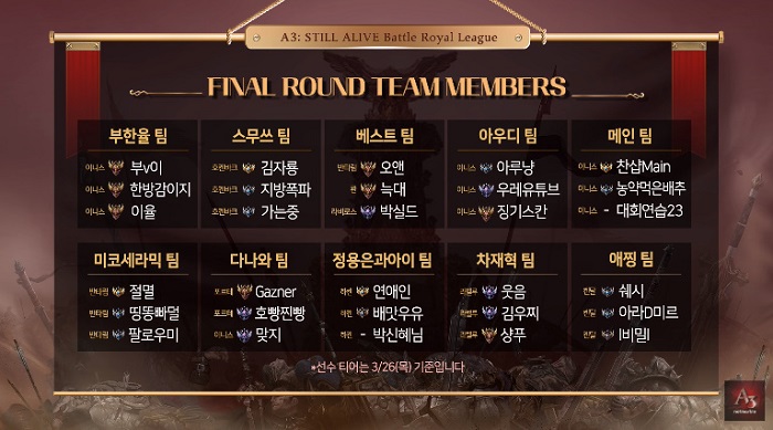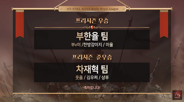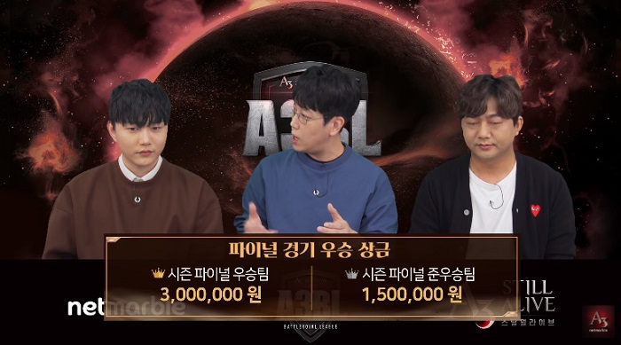 넷마블 모바일 MMORPG 'A3 : 스틸얼라이브'의 '배틀로얄 프리시즌 리그 (이하 A3BL)' 대망의 시즌 파이널 경기가 23일 펼쳐졌다.