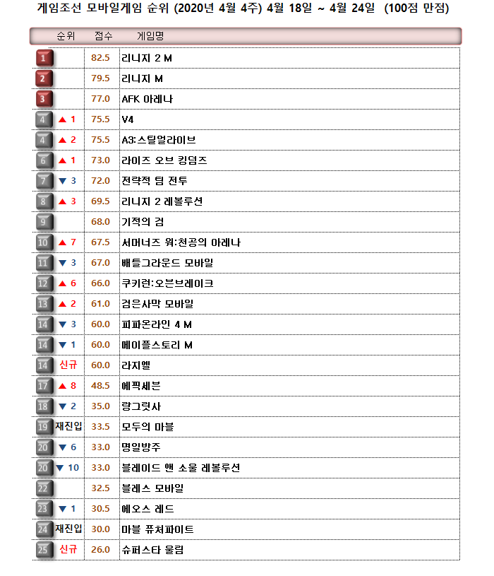 출시 6주년을 기념하는 대형 업데이트와 이벤트를 선보인 컴투스의 서머너즈 워가 10위를 기록했다.