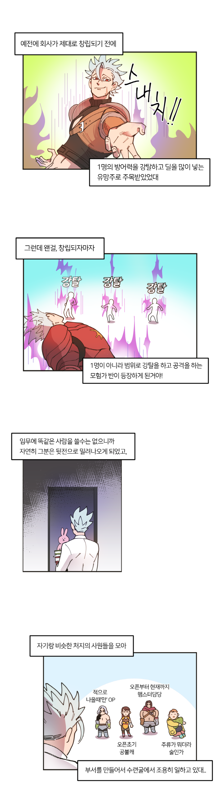 이번 웹툰은 최근 공개된 영웅 소개 웹툰 중 가장 많은 인기를 구사하고 있는 '리오네스 상사'의 두 주인공 '제리코'와 '길라'가 출현한다. 두 콤비는 휴일에 모여 회사에 있는 유령 부서(일명 망캐 부서)에 대한 이야기와 드레퓌스에 '십계 크라우드린'이 깃든 이유를 코믹하게 풀어냈다.