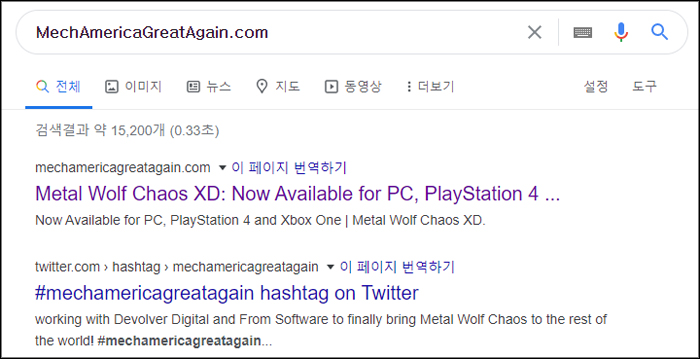 2004년 출시된 메탈 울프 카오스는 2019년 8월에 스팀을 통해 리마스터 버전이 출시됐다. 이번엔 모 대통령의 말을 인용해 MechAmericaGreatAgain.com이라는 주소를 선보여 이용자들의 정신을 다시 한 번 멍하게 만들었다.
