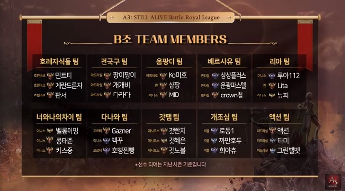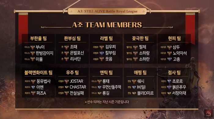 넷마블 'A3 : 스틸얼라이브 배틀로얄 리그 (이하 A3BL' 정규시즌1의 개막전이자 첫 조별 경기가 18일 펼쳐졌다.