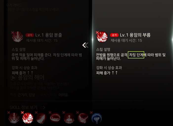 실제로 '용암의 해머'를 사용해본 결과, 적에게 막대한 피해를 줄 수 있다는 장점이 있지만 한편으로는 제대로된 효과를 보기 위해서는 위험을 감수해야 한다는 단점을 가지고 있었다. 버프 스킬인 [보호의 불꽃]을 제외하고는 모든 스킬이 '차징'을 기본으로 한다. 차징을 사용하지 않고 스킬을 사용해도 되지만, 그럴 경우에는 제대로된 효과를 보기 힘들다.