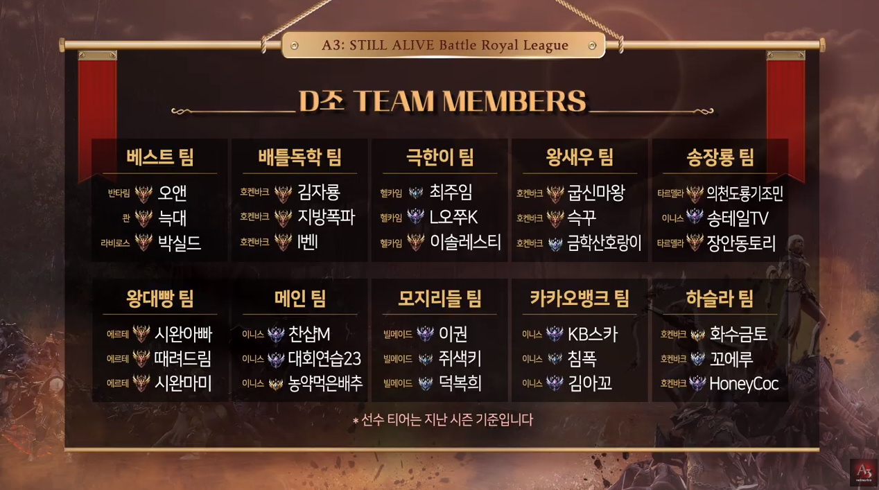 22일 넷마블 'A3 : 스틸얼라이브 배틀로얄 리그 (이하 A3BL)' 정규시즌1의 C조 및 D조의 조별 경기가 열렸다.