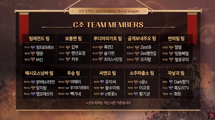 이날 조별 리그 경기에서는 지난 프리시즌에 출전한 바 있는 C조의 '반따림' 팀과 '자낳괴' 팀, '베스트' 팀, '배틀독학' 팀, '메인' 팀 등이 속해 있어, 치열한 경기를 예고했다.