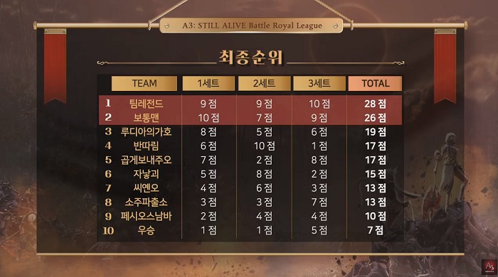 가장 빠르게 성장한 팀은 '팀레전드' 팀과 '보통맨' 팀이다. 두 팀은 높은 레벨을 기반으로 3섹터에서 경쟁팀을 다수 제거하면서 순위를 높여갔다. 그 가운데서도 '팀레전드' 팀이 1위에 가장 근접, '보통맨' 팀의 마지막 팀원까지 잡아내면서 1위를 기록했다. 결국 C조 종합 1위는 '팀레전드' 팀, 종합 2위는 '보통맨' 팀이 되면서 시즌 파이널 진출권을 따냈다.