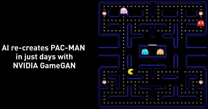 미국의 하드웨어 제조사 엔비디아는 '게임간(GameGAN)'이라는 AI 모델에게 약 50,000편에 해당하는 팩맨 관련 영상을 시청케 하고 이를 분석하여 게임 엔진과 같은 기반 없이 팩맨의 모든 기능을 구현한 '팩맨-리크리에이티드'를 만드는 데 성공했다.
