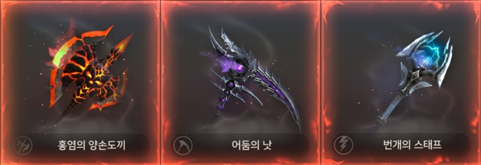 도끼와 낫, 스태프 조합을 사용하지 않는 2개 팀 또한, '태풍의 활', '어둠의 낫', '홍염의 양손도끼'를 사용하면서 거의 비슷한 조합을 예선전에서 사용했다.