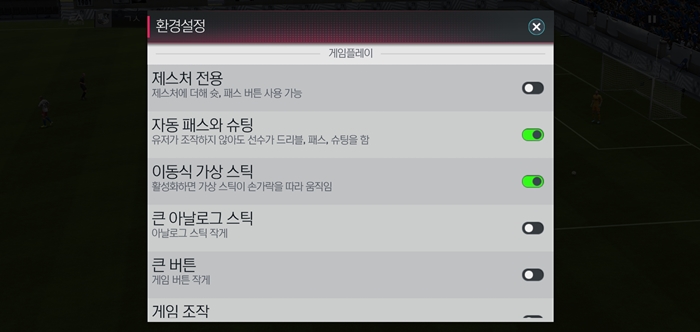 [사진6. FIFA 모바일 게임 플레이 화면] / [사진7. 게임플레이 조작 설정 화면]