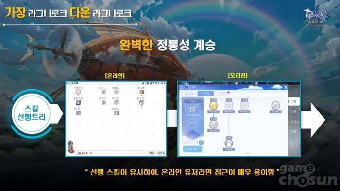 정통성을 계승한다는 콘셉트에 맞춰 라그나로크 오리진은 온라인과 흡수한 스킬트리와 스탯을 제공하며 이를 통해 온라인을 해본 유저라면 쉽게 적응할 수 있다. 물론 단순히 원작을 구현한데 그치지 않고 이를 넘어서는 다양한 콘텐츠가 제공된다.