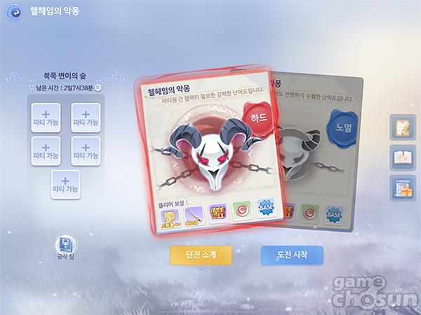 헬헤임의 악몽은 노멀과 하드 난이도가 존재한다. = 게임조선 촬영