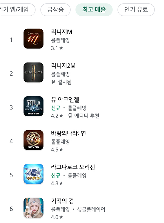 넥슨의 신작 모바일 MMORPG '바람의나라:연'이 출시 3일 만에 구글 최고 매출 4위에 오르며, 1세대 MMORPG의 자존심을 지켰다.