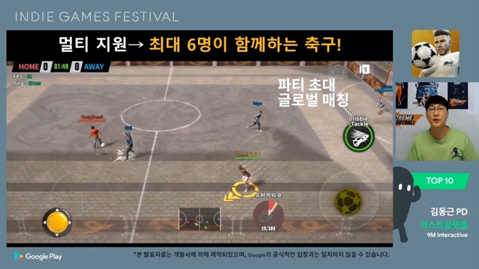 또한, 팀 단위로 1:1 경기를 치르던 기존 축구 게임의 패러다임을 바꾸기 위해 EA를 단체 퇴사하여 실시간, 최대 6명 동시참여, 각자 하나의 선수만을 조작하는 동네 축구 '익스트림풋볼' 개발팀 9M인터렉티브의 이야기도 눈길을 끌었다.