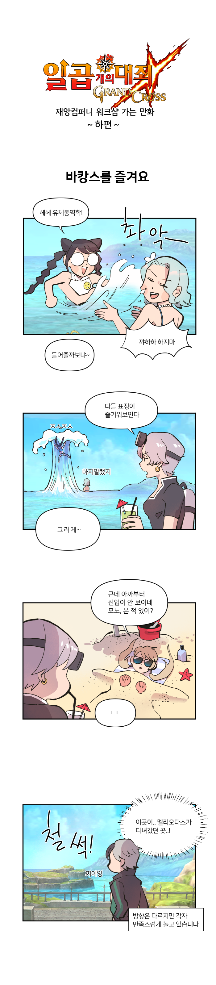 넷마블의 모바일RPG '일곱 개의 대죄 : 그랜드 크로스(이하 일곱개의대죄)'의 신규 웹툰 '휴가대신 워크샵' 하편이 공개됐다.