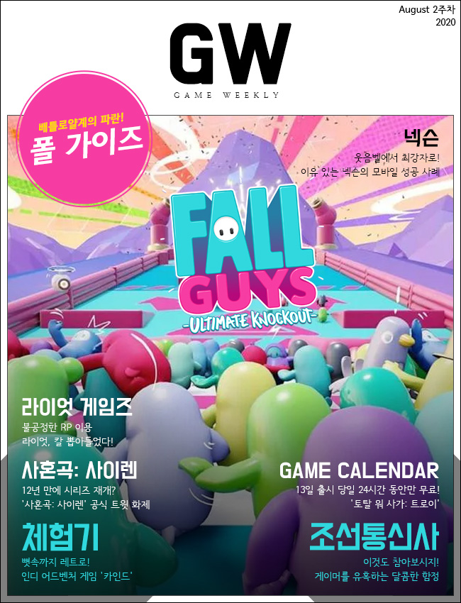 폴 가이즈는 최후의 1인이 되기 위해 다른 이용자와 재미난 경기를 펼치는 게임 작품인데요! 이용자는 2등신의 캐릭터를 조작해 다른 이용자보다 빠르게, 그리고 경쟁자를 제거하면서 목표 지점까지 먼저 도달하는 방식입니다. 특히 아기자기한 그래픽과 통통튀는 특징을 가진 물리엔진 등으로 큰 인기를 끌고 있습니다. 개인전뿐만 아니라 랜덤으로 팀을 짜 플레이하는 팀모드도 마련돼 협력의 재미까지 잡았는데요! 전세계에서 가장 핫한 게임이 되고 있는 '폴 가이즈'를 만나보도록 하시죠.