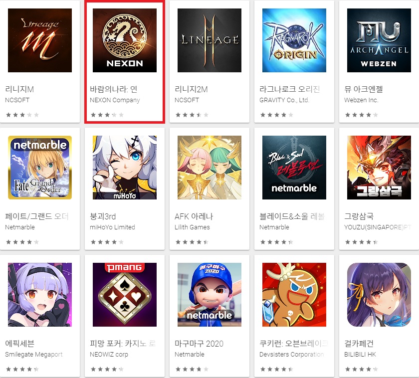 넥슨의 모바일 게임 '바람의 나라:연'이 다시 한번 구글스토어 매출 순위 2위를 탈환하면서 화제를 불러모으고 있다