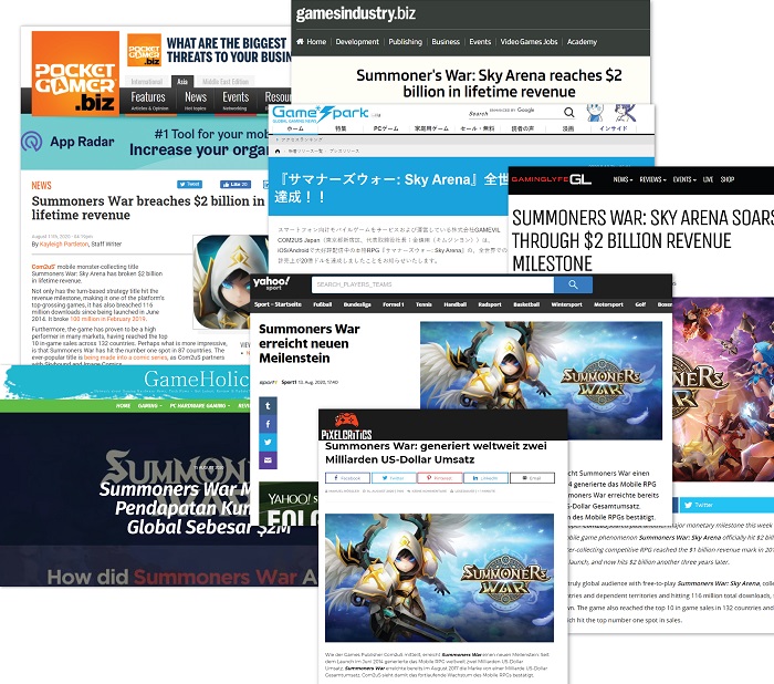 이처럼 ‘서머너즈 워’의 여러 성과 및 유저 친화적 행보에 관한 해외 외신의 반응도 뜨겁다. 영국 유명 게임전문지 포켓게이머(Pocket Gamer)는 ‘서머너즈 워’가 지난 6년간 총 132개 국가에서 게임 매출 순위 TOP10에 도달, 그 중 87개 국가에서 1위를 달성한 점에 대해 높이 평가하며, 스카이바운드와 함께 제작한 코믹스 시리즈 ‘서머너즈 워: 레거시(Summoners War: Legacy)’에 대한 기대감을 내비쳤다.