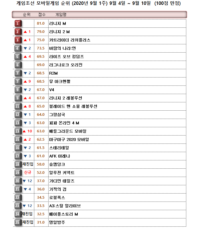 한편, 상위권에서는 리니지:리마스터와 리니지2가 동반상승하며 국산 MMORPG의 자존심을 지키고 있다.