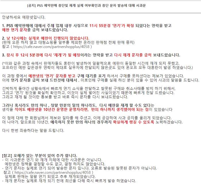 예약 판매 연기 소식만 접하고, 예약 판매 재개에 대해서는 통보받지 못한 일부 구매 희망자는 불만을 제기하기도 했다. 이에 일부 판매 업체는 사과문을 게재하기에 이르렀다.