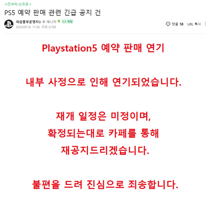 현재 코로나19 이슈로 인해, 몇몇 매장을 제외하고는 온라인을 통해서만 예약 판매를 진행했으며, 많은 게이머가 플레이스테이션5 사전 예약을 위해 판매 사이트로 몰렸다. 이에 오후 12시가 채 되기도 전부터 몇몇 사이트는 접속이 불가능했다.