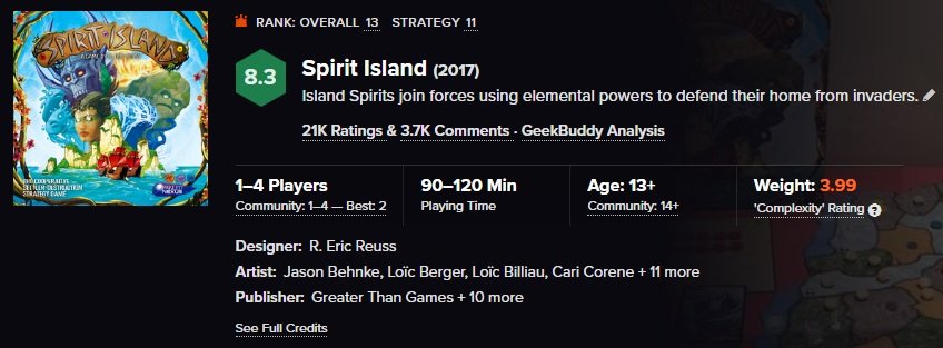 보드게임긱 순위는 현재 13위로 베스트 인원은 2인으로 소개되고 있지만, 1~4인이 즐겨도 동일한 재미를 선사해 인기가 많습니다. 특히, 다른 보드게임이 돌아가며 플레이를 하기에 인원이 늘어날수록 기다리는 시간이 늘어나는 단점이 있는데, 정령 섬은 모든 플레이어가 동시 진행을 하기 때문에 플레이어 간의 논의 시간이 늘어난다는 점을 제외하면 플레이 타임이 확연하게 늘어나지 않는다는 장점이 있습니다.