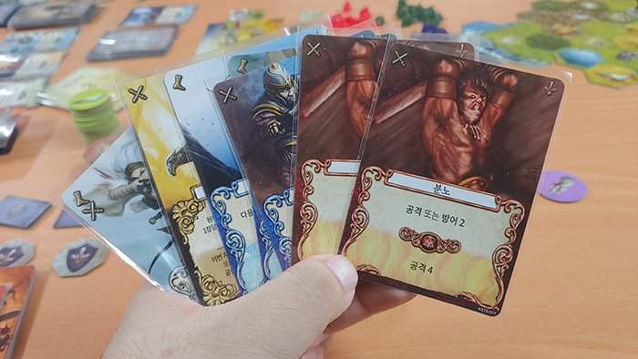 앞서 언급한 메이지 나이트가 전략적인 게임이라면, 로빈슨은 우리가 익숙히 알고 있는 카빨망과 주빨망이 핵심인 보드게임입니다. 조난당한 섬에서 움막을 치고 동물을 사냥하고, 식량을 모아가며 생존하는 이 게임은 당연하게 카드를 통해 시련이 닥쳐오고, 주사위를 통해 성공과 실패 여부를 체크하는 등 극한의 운 요소가 담겨 있습니다.