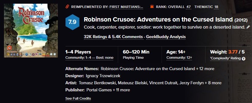 로빈슨은 보드 피아에서 국내에 한글판으로 정식 출시했습니다. 1판의 경우 오래전에 절판이 났고, 2판의 경우 올해 펀딩을 통해 판매됐습니다. 현재 중고거래 외에는 구할 방법이 없는 것이 단점이라면 단점이네요.