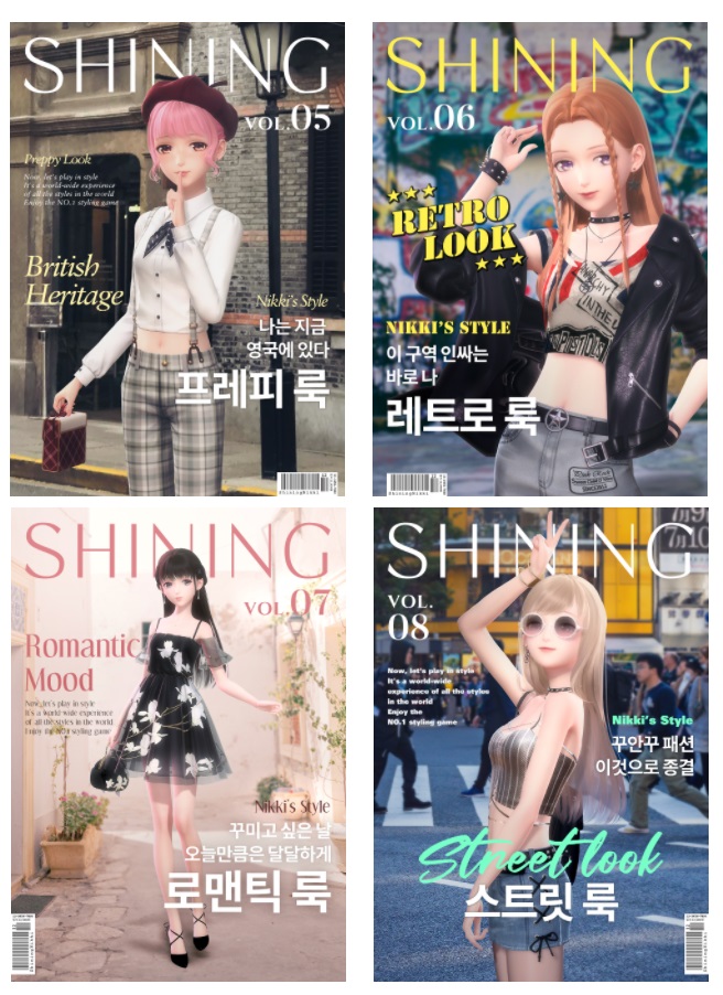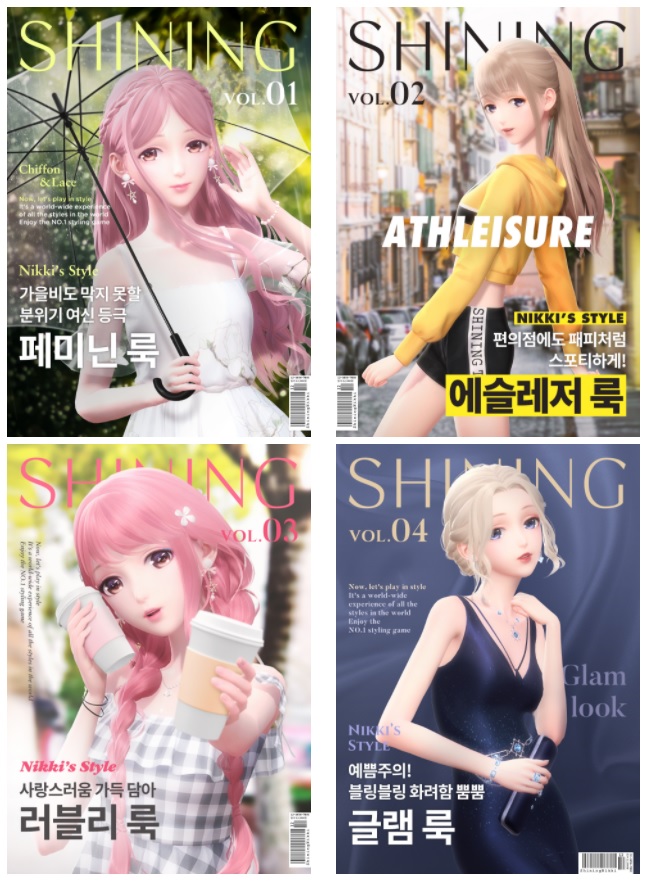 니키에 적용할 수 있는 코디는 무궁무진하다. 우리나라를 대표하는 의복인 한복을 비롯해, 웨딩, 교복, 발레리나, 보이시, 복고, 마린룩 등 실제로 존재하는 거의 모든 종류의 의상을 구현해볼 수 있다. 또, 같은 의상이라고 할지라도 니키의 헤어 스타일과 착용하는 악세사리, 그리고 배경, 메이크업에 따라 전혀 다른 분위기를 풍길 수 있다. 리폼도 빼놓을 수 없는 샤이닝니키만의 매력 요소다.