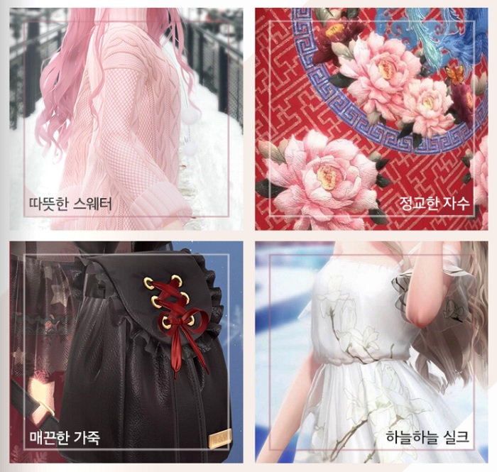 이와같이 매우 정교한 코디가 가능한 것은 가죽과 실크, 폴리, 데님 등 게임 내에 무려 1000가지가 넘는 원단이 구현돼 있기 때문이며, 해당 원단이 3D로 표현돼 현실감을 더욱 높이고 있다.