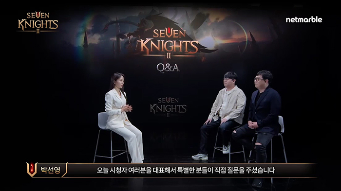 정보 공개 이후에는 세븐나이츠2 한지훈 사업 본부장과 김정민 개발 총괄 PD가 간략하게 네 가지 질문에 답하는 Q&A를 진행했다.