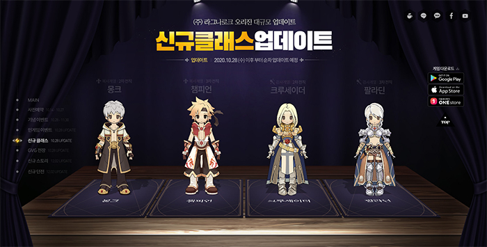 28일에는 신규 클래스 '몽크', '챔피언'와 GvG 전장 3종 추가할 예정이며, 검사 계열의 새로운 전직인 '크루세이더'와 '팔라딘'을 추후 콘텐츠로 공개했다. 2020년의 대미를 장식할 12월 업데이트에선 신규 스토리와 함께 신규 던전 '글래스트헤임'를 선보인다.