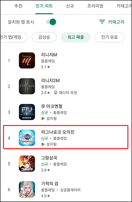 ■ 매출 4위의 쾌거, 라그나로크 IP 파워 입증