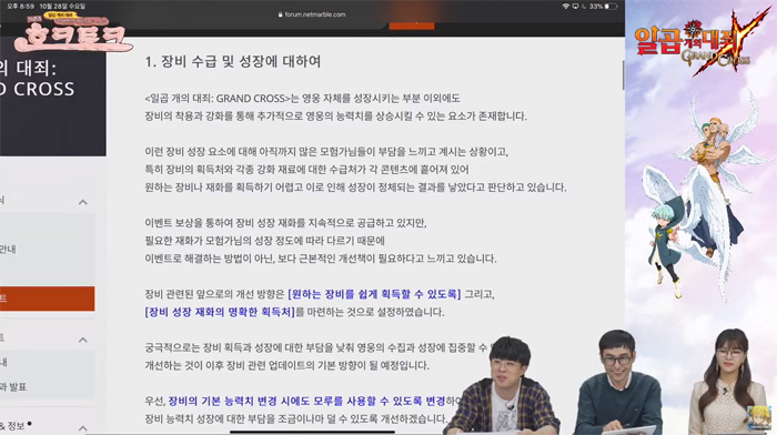 개발자 노트를 통해 공개된 내용을 요약해서 소개한 자리로 '장비 능력을 모루로 교체 가능', '솔가레스 요새 편의성 개편', '기사단 보스전 개편', '신규/복귀 유저 성장 지원', '시나리오 난이도 조정', '대난투 시스템 개선' 등이 있다. 전체적으로 잘 사용되지 않는 콘텐츠의 활용도를 높이고 불편한 시스템을 개편하겠다는 것.