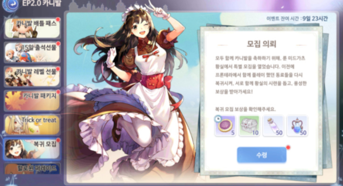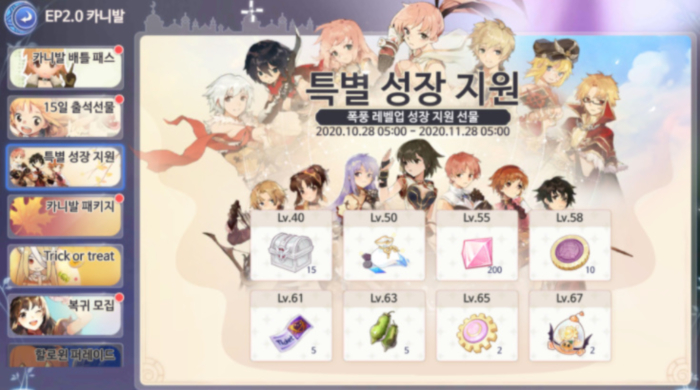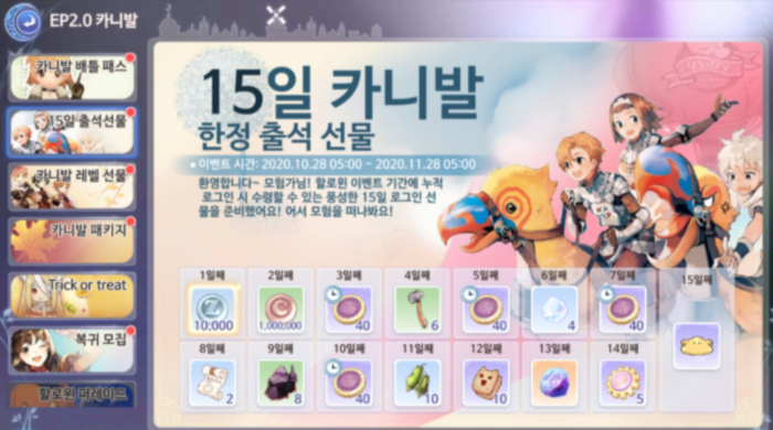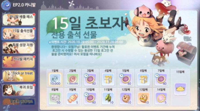 마지막으로 출시 100일과 할로윈을 기념하는 다양한 인게임 이벤트가 개최된다. 우선 모든 이용자를 대상으로 28일까지 15일 출석 이벤트가 진행된다. 특히 신규 캐릭터와 복귀 캐릭터는 특별한 보상을 받을 수 있다. 출석 이벤트를 진행하려면 25레벨 이상 캐릭터를 보유해야 한다. 이를 위해 특정 레벨마다 보상을 지급하는 특별 성장 지원 이벤트도 함께 진행된다.
