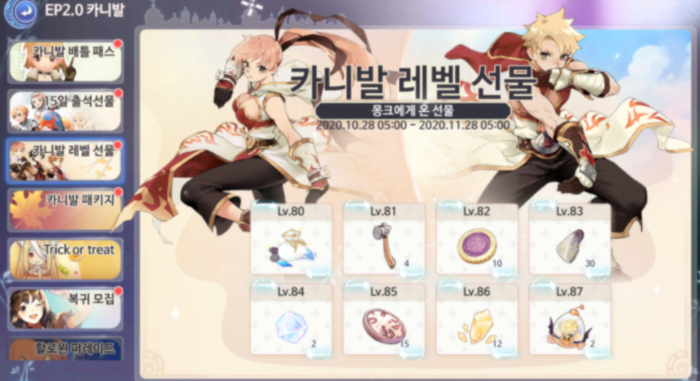 카니발 레벨 선물 이벤트 = 라그나로크 오리진 공식 커뮤니티 갈무리
