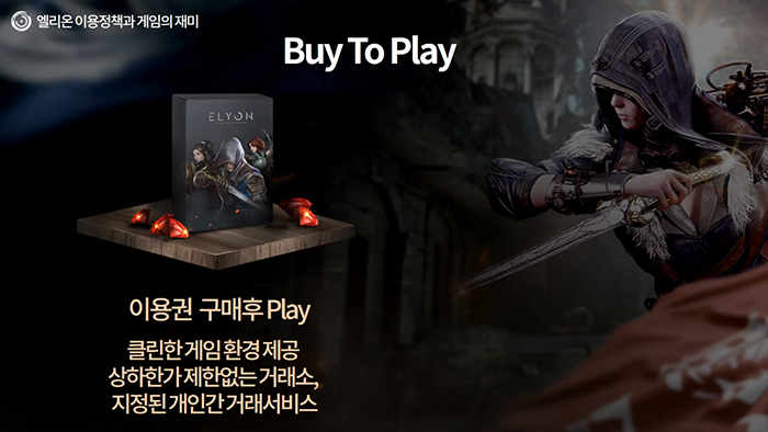 배틀그라운드의 성공 신화에 기반해 카카오게임즈의 '엘리온'은 국내에서는 다소 보기 힘든 바이 투 플레이(Buy To Play) 방식으로 게임을 플레이한다.