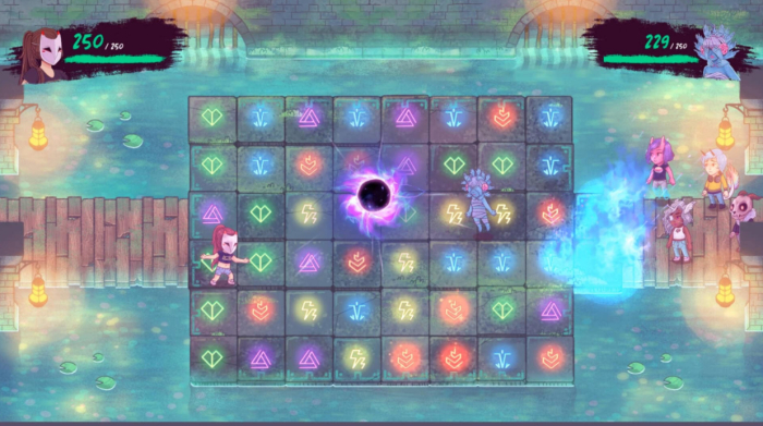 '더 월드 넥스트 도어'는 비주얼 노벨과 퍼즐을 조합한 게임이다. 같은 색깔 퍼즐을 엮어 연쇄 반응을 일으키고, 이를 통해 적을 공격하는 방식으로 게임을 진행한다. 평행 세계를 주제로 악마나 언데드 같은 다양한 종족이 등장하고, 독특한 성격의 매력적인 캐릭터들이 스토리를 이끌어나간다.