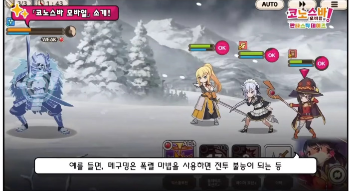 넥슨의 또 다른 신작 '코노스바 모바일: 판타스틱 데이즈(이하 코노스바)'은 일본의 유명 애니메이션 '이 멋진 세계에 축복을!’을 바탕으로 개발된 수집형 RPG다.