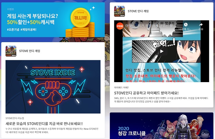 스마일게이트는 스토브 인디라는 플랫폼을 통해 인디 게임 서비스 및 커뮤니티 공간을 창출했을 뿐만 아니라, 다양한 채널을 통해서도 인디 게임을 홍보하고 있다.