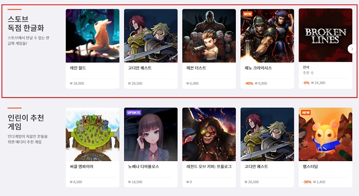 스마일게이트는 스토브에서 '스토브 인디'라는 별도의 홈페이지를 제공하고 있는데, 최근에는 리뉴얼을 통해서 게이머가 인디 게임에 더욱 편리하게 접근할 수 있도록 했다.